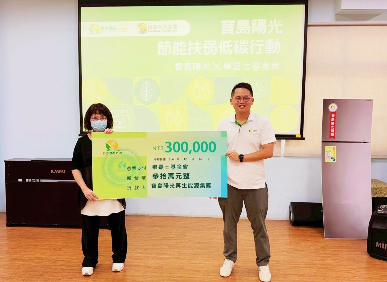 Our "Energy efficiency and support program" marks its third year! This year, we joined hands with the BJS Foundation, donating NT$300,000 to help 10 low-income families replace old, energy-consuming appliances with brand-new, Grade 1 energy-efficient refrigerators.
